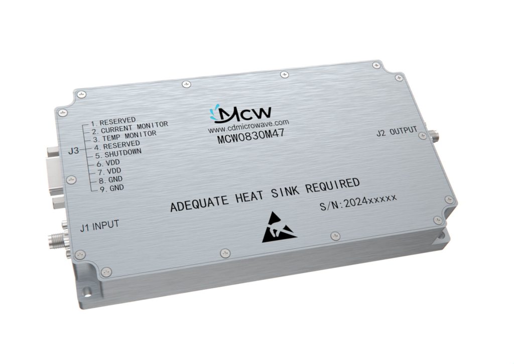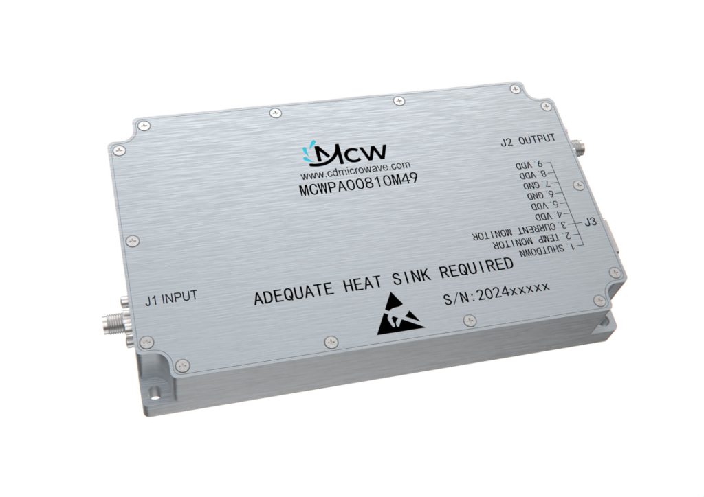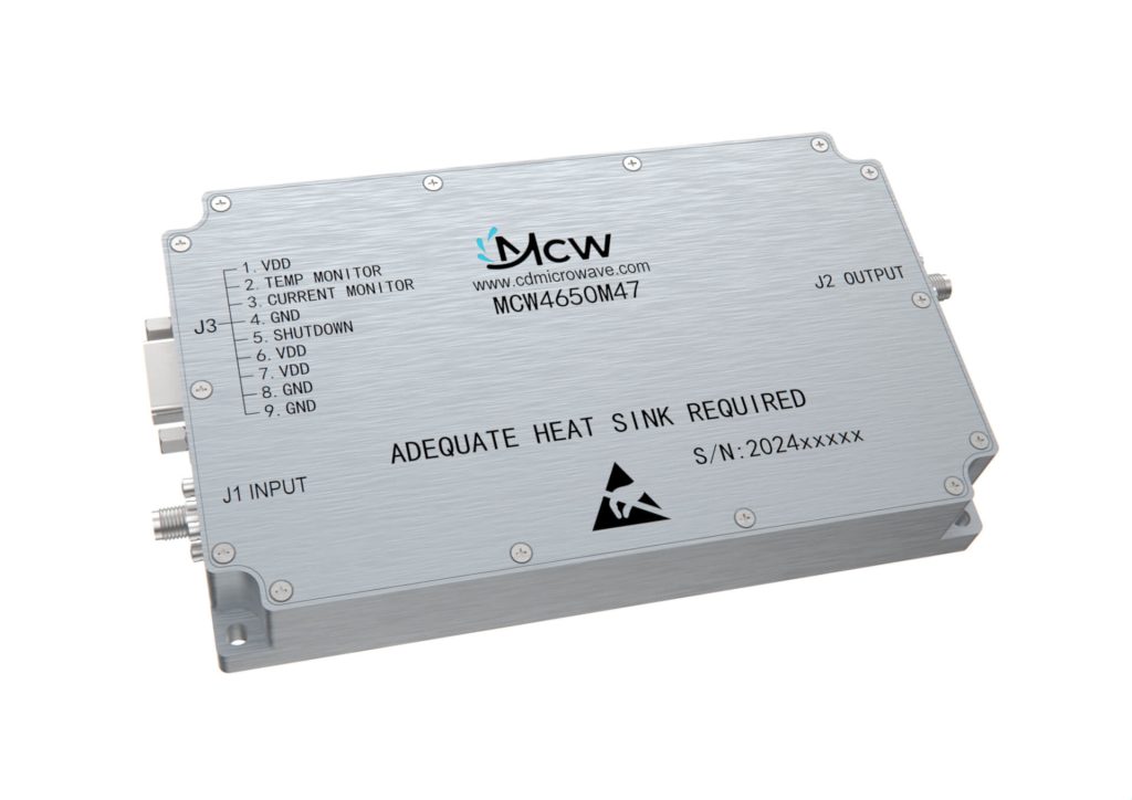 مضخم طاقة عالي النطاق العريض، متعدد الأوكتاف، بنطاق تردد من 4450 MHz إلى 4850 MHz، بكسب قدره 20 dB وطاقة خرج تبلغ 50 W