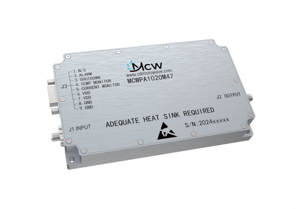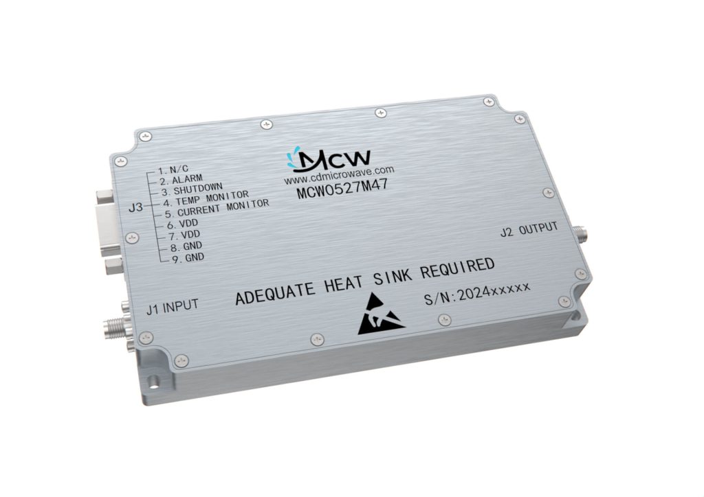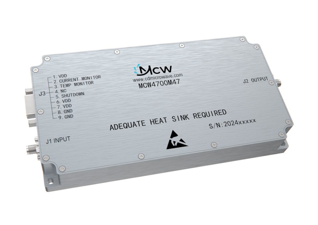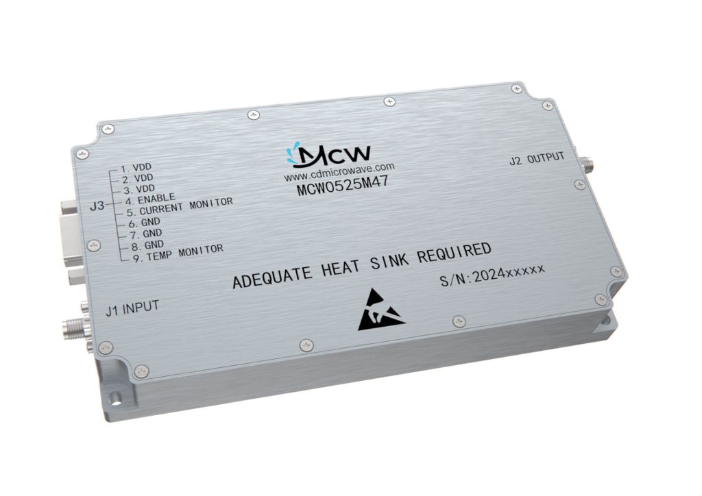 مضخم طاقة عالي النطاق العريض، متعدد الأوكتاف، بنطاق تردد من 4400 MHz إلى 5000 MHz، بكسب قدره 47 dB وطاقة خرج تبلغ 50 W