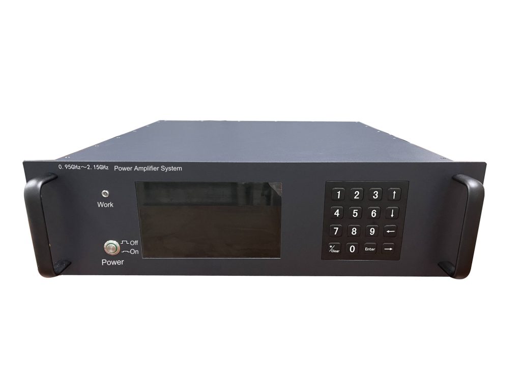 نظام مضخم طاقة بنطاق تردد من 1000 MHz إلى 2000 MHz، بكسب قدره 57 dB وطاقة خرج تبلغ 300 W